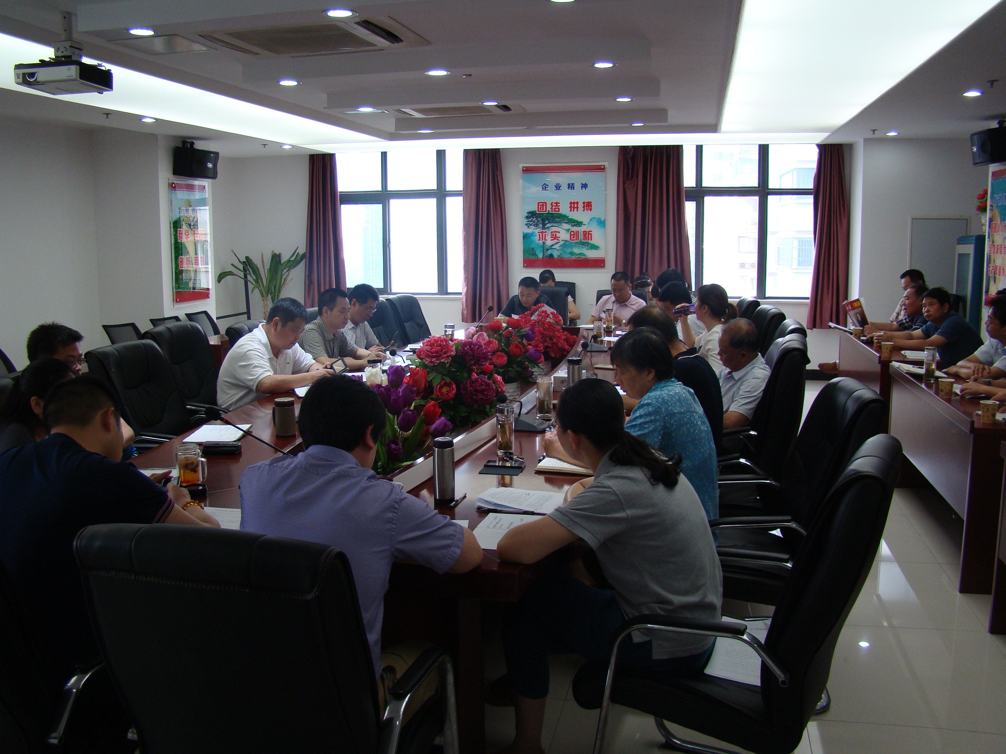 7月20日上午,公司党委召开了2015年三季度党群工作例会暨党委中心组扩大学习会。公司党委书记、纪委书记胡六中主持会议,公司董事长、总经理王军邦出席会议,公司领导班子成员、所属各单位、机关各部门主要负责人、基层党支部书记、工会主席、党群部门有关人员参加了会议。