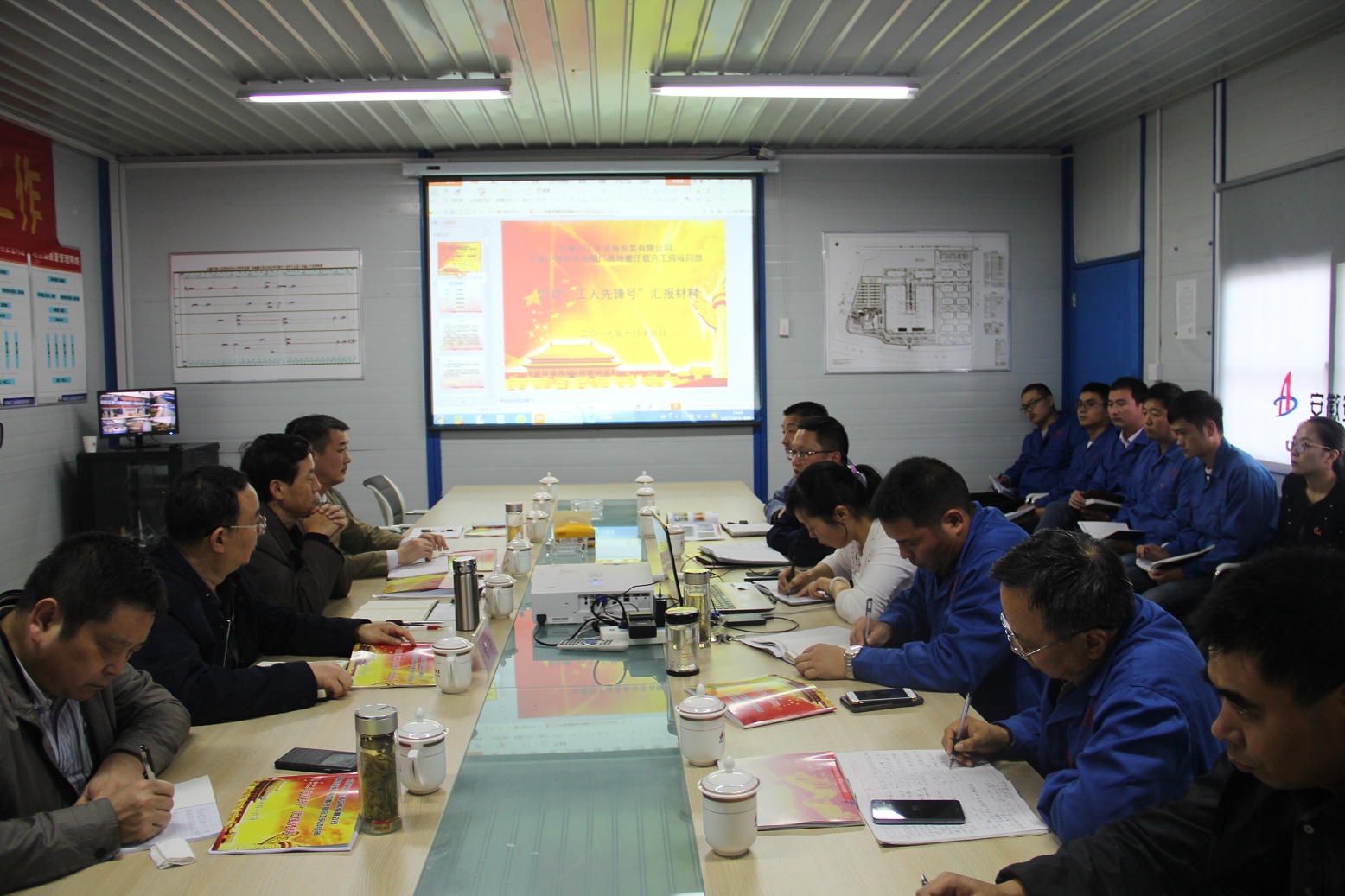 最后,王军邦董事长要求:一是希望项目在目前取得阶段性成果的基础上,再接再厉,继续围绕“工人先锋号”各项创建工作,争创一流、争当先锋;二是要牢固树立“建一项工程、育一批人才”的理念,大力培育管理人才;三是要认真总结,不断积累经验,公司将以蚌埠卷烟厂项目为样板,采取样板引路,带动其他工程项目“工人先锋号”创建工作,促进公司健康快速发展。