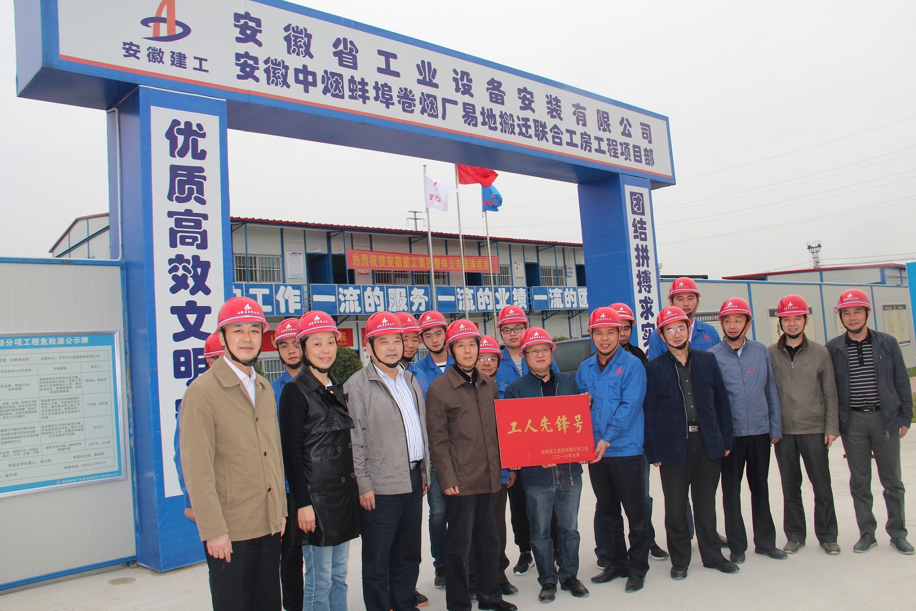 10月16日,由集团公司工会主席徐晓光率队,安徽交航纪委书记、工会主席李杨,安建地产工会主席龙华组成的验评组,赴安徽安装蚌埠卷烟厂项目进行集团“工人先锋号”创建工作考核验评并授牌。安徽安装董事长、总经理王军邦,党委书记胡六中,纪委书记、工会主席李宽旭,蚌埠分公司领导班子成员等人陪同检查。