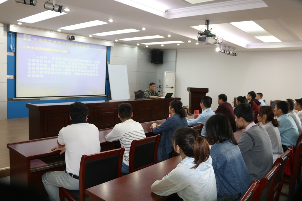 政治处主任周玉兵围绕中美贸易摩擦升级进行了国防形势教育,并就产生的历史背景、原因、对国家乃至世界产生的多方影响等内容与在座进行了交流,有助于团员青年理性看待时事热点,树立正确的舆论导向。