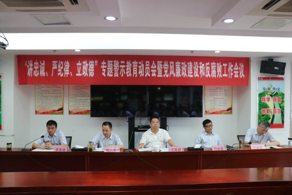 董事长、总经理、党委副书记王军邦传达了集团公司党委书记、董事长赵时运在集团“讲忠诚、严纪律、立政德”专题警示教育动员部署会暨2018年党风廉政建设和反腐败工作会议的讲话精神。并就开展专题警示教育提出了三点要求,一是要提高政治站位,深化思想认识。公司各级领导干部要认真贯彻新时代党的建设总要求,把党的政治建设摆在首位,深刻领会开展“讲忠诚、严纪律、立政德”专题警示教育的重要意义,切实端正思想认识,增强政治自觉,以积极的心态参加警示教育,真正做到身入心入、心动行动。二是突出重点,抓住关键环节。要紧紧扭住“学”这个环节,把强化理论武装贯穿专题警示教育全过程;要紧紧扭住“查”这个环节,自查自纠,进行一次全面的“党性体检”;要紧紧扭住“改”这个环节,立行立改,治标治本;要紧紧扭住“树”这个环节,树牢“四个意识”,坚定“四个自信”,当好先锋,作好表率。把强化理论武装贯穿专题警示教育全过程。三是扛起责任,务求工作实效。要把开展的“讲忠诚、严纪律、立政德”专题警示教育与学懂弄通做实习近平新时代中国特色社会主义思想和党的两学一做学习教育常态化制度化结合起来,与即将开展的“不忘初心,牢记使命”主题教育结合起来,与安徽安装公司当前各项工作结合起来,为企业净化优化政治生态,营造良好发展环境提供坚强有力的政治保障。