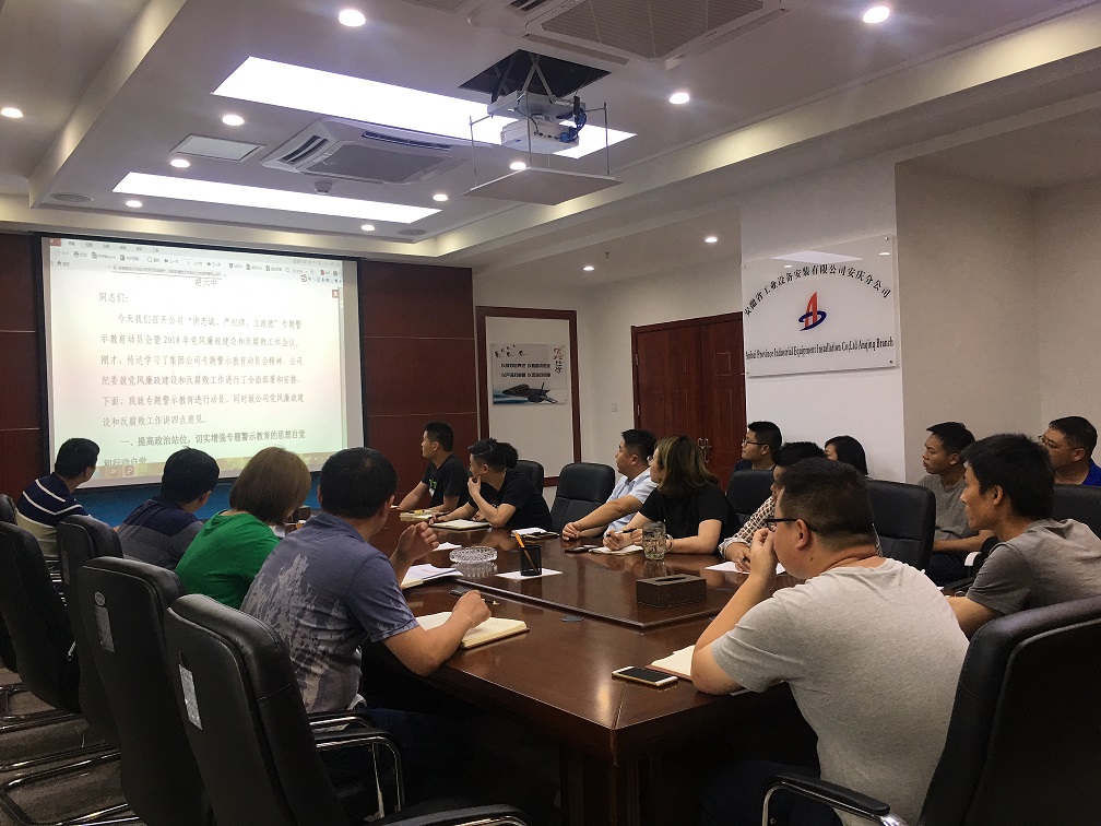 6月20日下午,安庆分公司党支部召开了“讲忠诚、严纪律、立政德”专题警示教育动员扩大会议,分公司全体员工参加动员会。