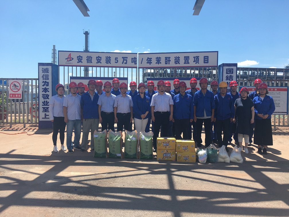 炎炎夏日,骄阳似火。为做好高温季节防暑降温工作,确保一线职工的健康安全,7月17日下午,公司董事长、总经理、党委副书记王军邦,在纪委书记、工会主席李宽旭和副总经理李原等公司相关部门负责人的陪同下,深入安庆分公司力天环保项目部,为坚守在一线的员工送去绿豆、白糖、矿泉水、藿香正气水等防暑降温慰问品。