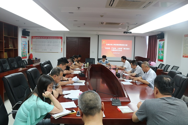 8月10日下午,后勤保障部党支部在公司十六楼会议室召开“讲忠诚、严纪律、立政德”警示教育专题组织生活会,公司党委书记、副总经理胡六中,纪委书记、工会主席李宽旭出席会议,会议由党支部书记赵荣珣主持。