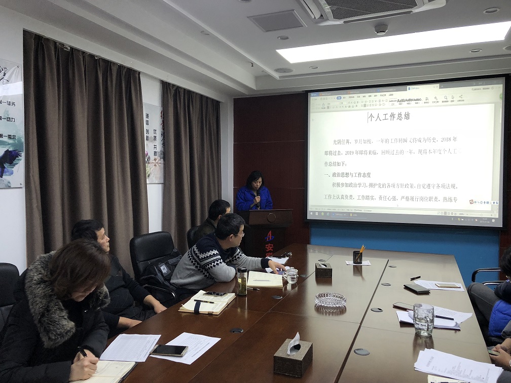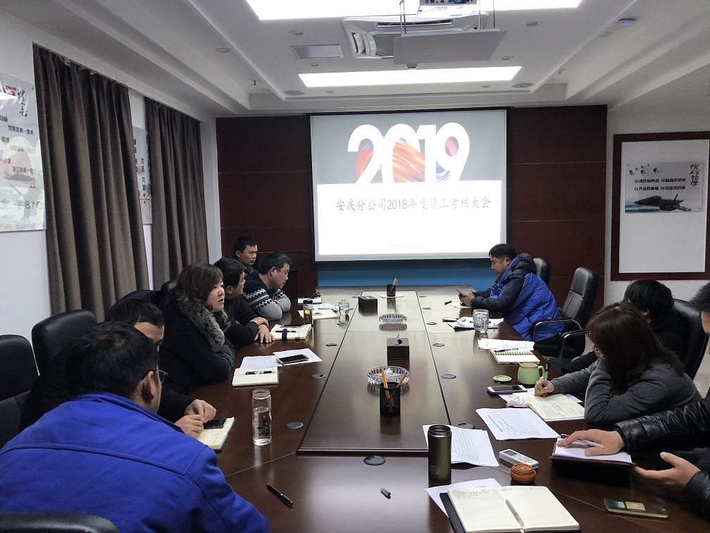 1月6日下午,安庆分公司召开2018年度员工考核大会,会议由党支部书记刘红艳主持,分公司全体员工参加会议。