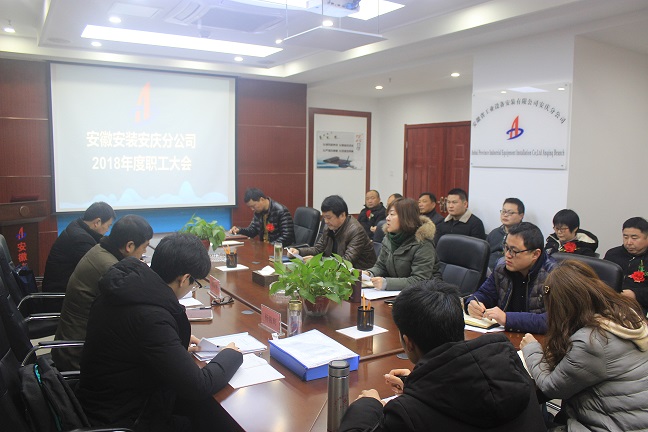 3月7日上午,安徽安装公司安庆分公司召开2018年度职工大会,公司副总经理刘安俊,纪委书记、工会主席李宽旭应邀出席了大会。会议由安庆分公司党支部书记刘红艳主持。