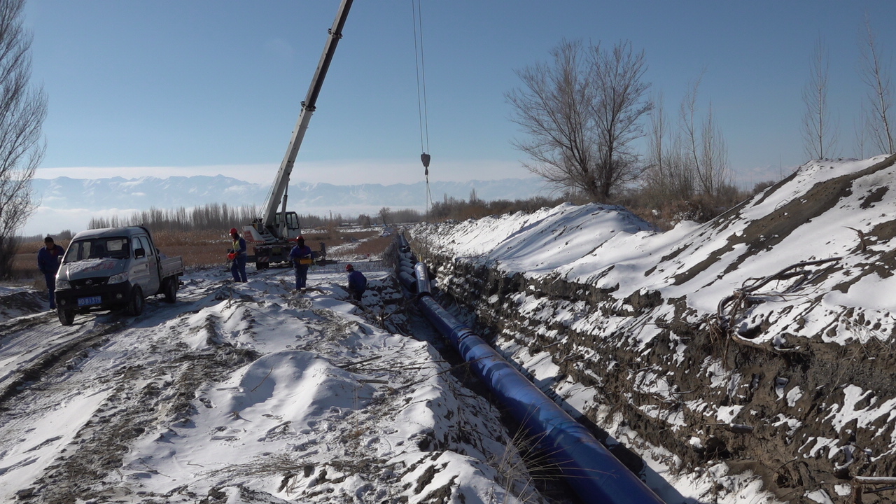 中水回用工程是在野外长距离作业,管道沿途需要穿过高速、省道、铁路、亚欧光缆及众多乡村道路和田间阴沟,施工区域内有农田、戈壁、沙漠,沼泽等,自然环境极其恶劣,施工地质极为复杂。尤其在步入11月,新疆乌苏市正式进入寒冬季节,期间平均气温都在零下十度以下,并时常飞舞着雪花,由于昼夜温差大,夜间项目上的气温更是达到零下二三十度,这给项目部施工带来了严重挑战,但项目部员工没有被恶劣的环境所吓倒,他们“逢山开路、遇水搭桥”,努力克服各方面不利因素,合理安排施工进度计划。全体职工发扬安徽建工人“特别能吃苦,特别能战斗”的企业作风,在公司“大干60天”劳动竞赛的正向激励下,不畏环境艰苦,抓质量,保安全,战荒漠,斗严寒,每天坚持战斗在生产第一线,哪里有施工,哪里就有管理人员的坚定身影。