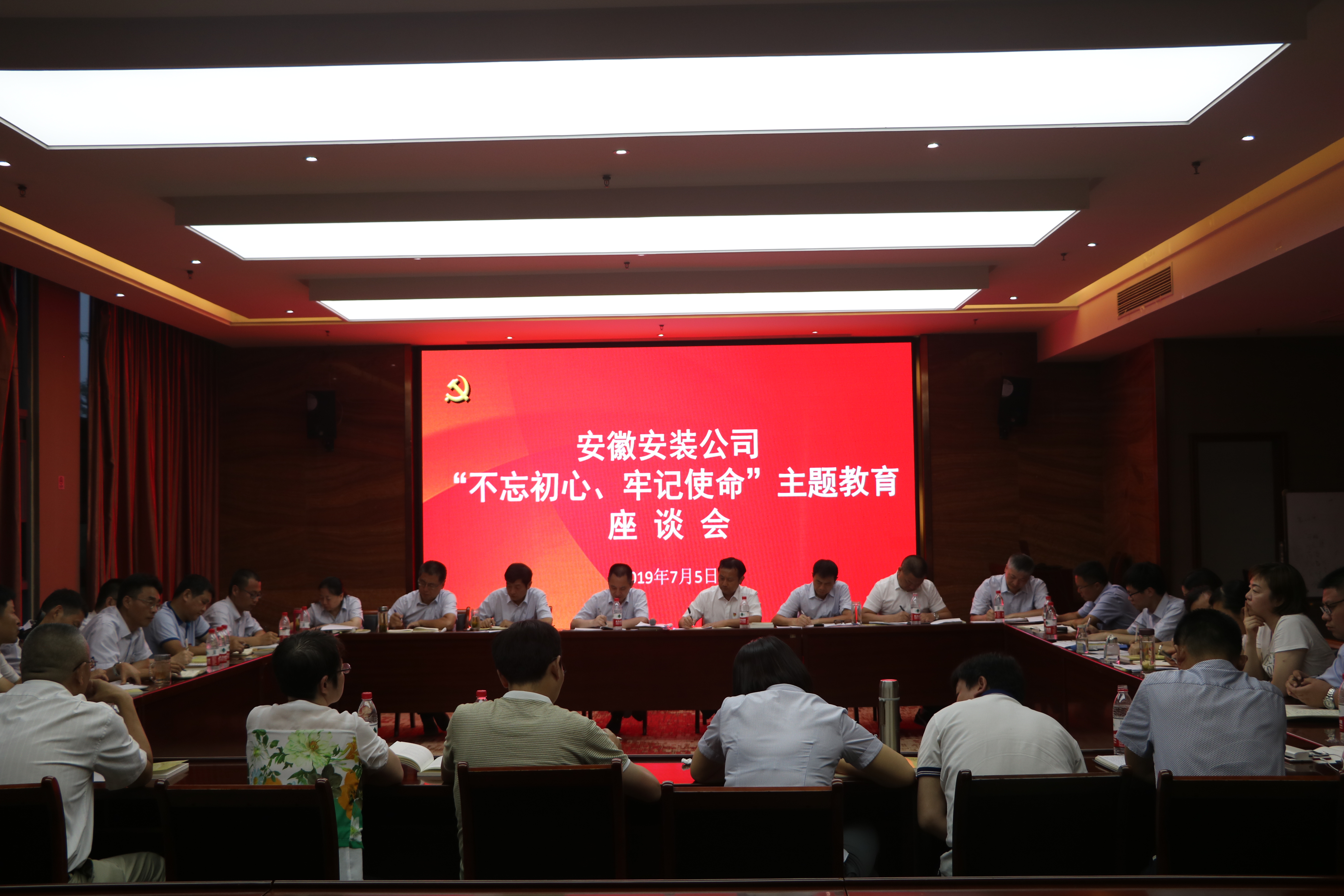 7月5日,安徽安装公司召开“不忘初心、牢记使命”主题教育座谈会,公司领导班子成员出席会议,机关部门负责人、所属单位党政负责人参会。