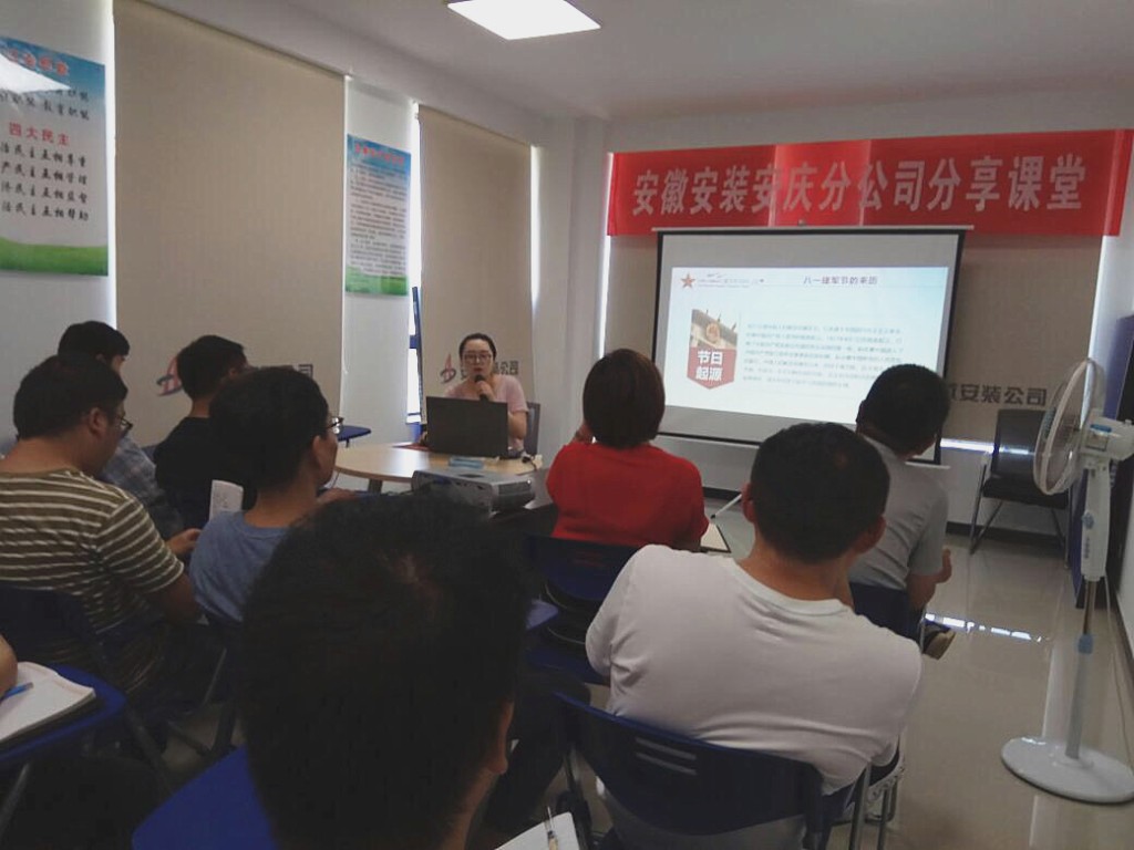 8月1日下午,安庆分公司党支部充分利用分享课堂,组织全体员工开展“不忘初心,牢记使命”主题教育之庆祝中国人民解放军建军92周年活动。