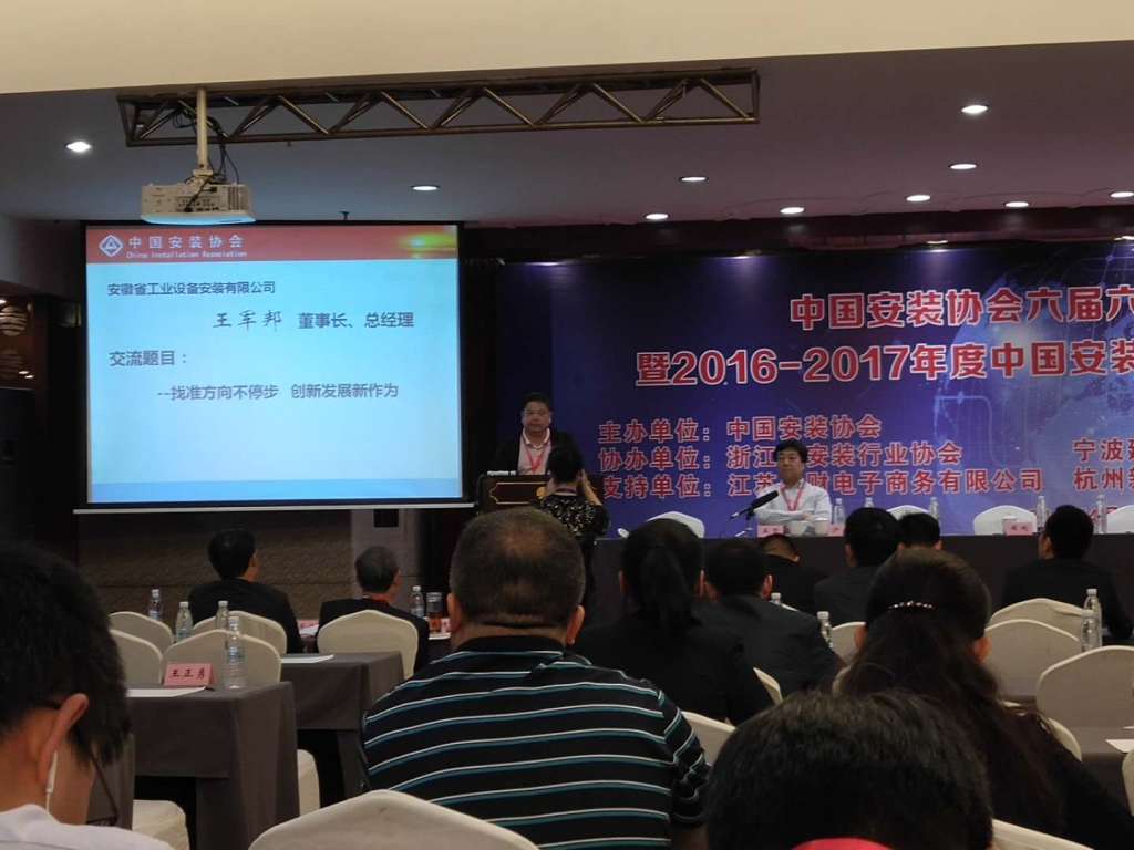 2018年4月24日,安徽省安装和机械设备协会参加中国安装协会在宁波召开的六届六次理事(扩大)会议暨2016-2017年度中国安装协会科学技术进步奖颁奖大会。各省、自治区、直辖市安装协会(分会)、会员单位地区联络组负责人,协会理事与科技进步奖获奖单位代表等近300人参加会议。我会会长王军邦携副会长李鹏飞、秘书长杜庆梅及部分会员单位代表分别参会。