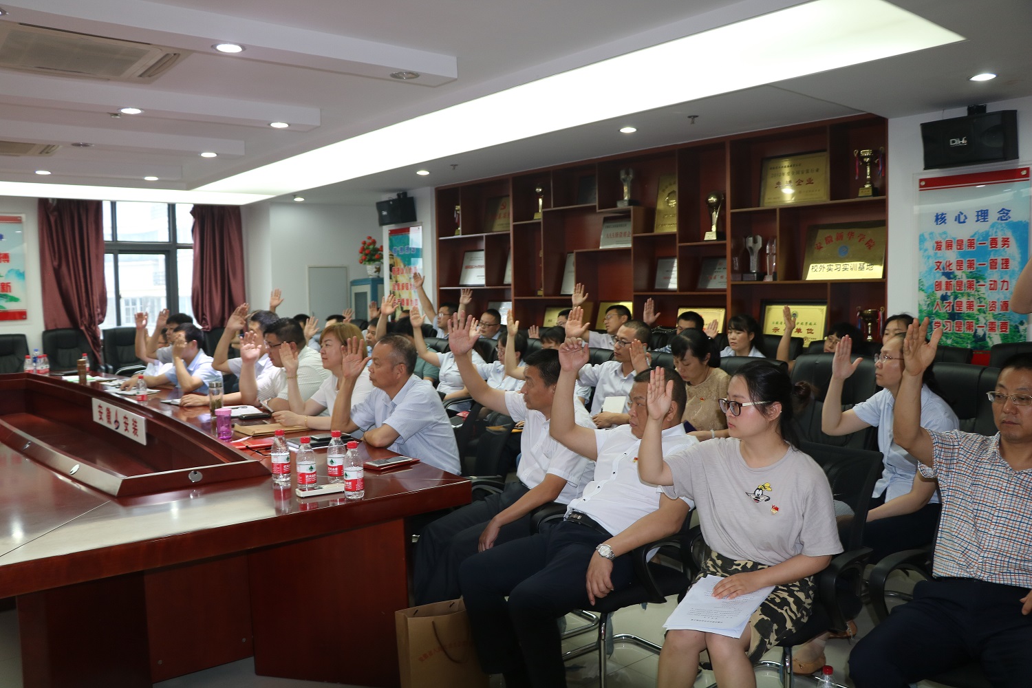 与会全体职工代表以举手表决的方式审议通过了《安徽安装公司年金实施方案》和《决议》。