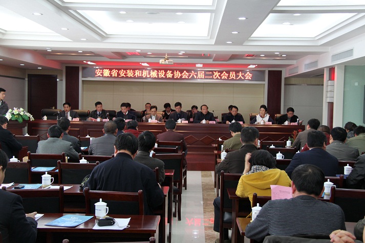 安徽省安装协会六届二次会员大会于2011年3月24日在合肥徽颐安港大酒店隆重召开。来自全省十七个市建管处领导及各市企业单位负责人等200余名代表参加了此次大会。安徽省住房城乡建设厅人事处陈扬年处长,安徽省民间组织管理局王南来副局长等领导莅临会议。安徽省安装协会副会长、中国机械工业第五建设工程公司总经理倪申举主持会议。
