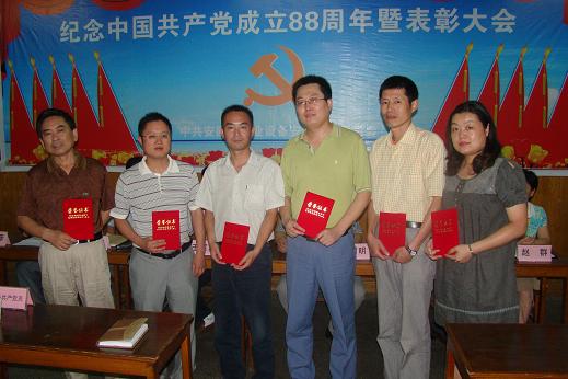 为迎接中国共产党成立88周年,公司党委于6月30日下午召开了“纪念中国共产党成立88周年暨表彰大会”。合肥地区在岗党员、非党员中层干部、入党积极分子,外地分公司经理、书记以及受表彰的先进个人参加了大会。大会由党委书记戴树明同志主持。