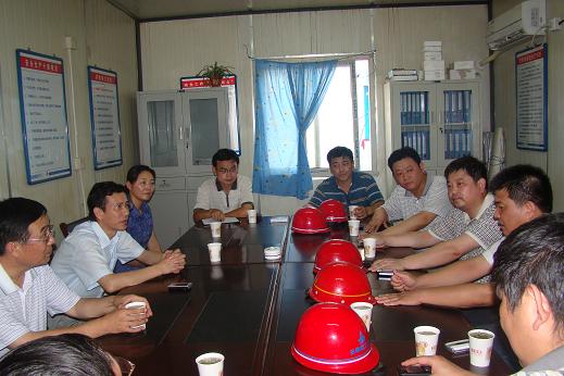 张书记一行代表集团公司向坚守岗位的职工表示亲切慰问,并认真听取了项目部经理郭左明有关工程概况、项目安全生产与保护、开展“双争”劳动竞赛、“党员先锋号”活动和创文明示范工地等工作汇报。张书记强调:项目部要密切关注高温期间职工的生产、生活情况,要特别重视安全生产,扎实地做好各项基础工作,保质保量完成工作任务,树立安徽省安的品牌形象。王总代表公司向集团领导冒着酷暑亲临一线慰问表示衷心的感谢,并表示:全体省安人将继续发扬“特别能吃苦、特别能战斗”的精神,战胜酷暑,奋力攻坚,保证各项任务顺利完成。