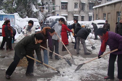 17日一早,在公司领导的亲自带领下,公司机关全体员工踊跃参与,怀着一份热情,积极铲雪除冰。经过近两个小时的奋战,将公司办公楼及生活区大院的主干道积雪和冰块铲扫干净,确保广大职工和住户的出行安全。
