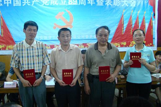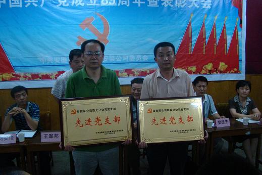 为纪念中国共产党成立89周年,公司党委于6月29日下午召开了“纪念中国共产党成立89周年暨‘创先争优’表彰大会”。公司在岗党员、非党员中层干部、入党积极分子以及受表彰的先进集体、先进个人参加了大会。大会由总经理王军邦同志主持。