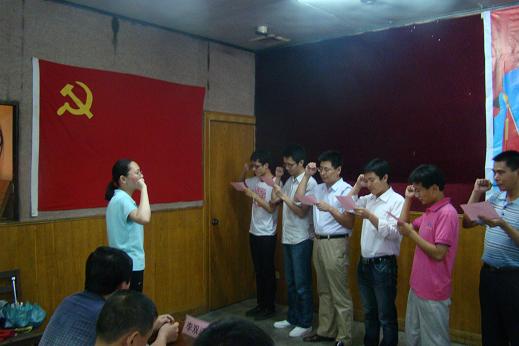 在激昂的国际歌和庄严的入党宣誓之后,大会进行表彰授奖仪式。在热烈的掌声中,两个先进党支部、4名优秀党务工作者和10名优秀共产党员依次上台领奖。