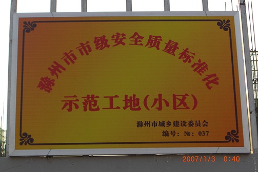 2010年12月31日,滁州分公司承建的皖投水岸星城一期三标段工程成功创建滁州市安全质量标准化示范工地。