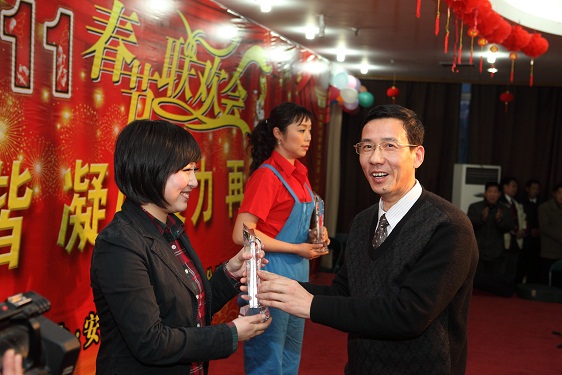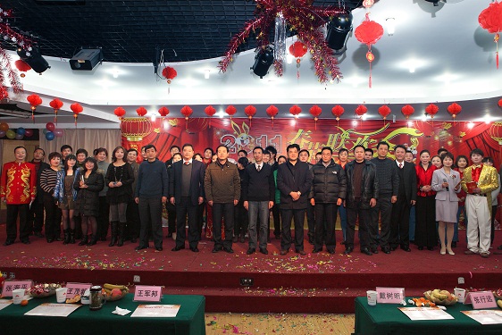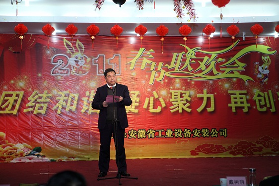 公司总经理王军邦代表公司党政领导班子致新春贺词,感谢一年来上级领导的大力支持和关怀,感谢全体员工的辛勤付出和热爱。他说,过去的2010年里,在集团公司的领导下,公司上下同心协力,完成产值10.08亿元,各方面工作取得了优异的成绩,生产经营快速发展,管理模式逐步成型,资源整合不断优化,文化载体日渐丰富,品牌效应日渐凸显,凝聚力和执行力不断提高,各项工作稳步迈上了新台阶,在行业内得到了充分的肯定,实现了“十一五”的完美收官。在“十二五”开局之年里,我们将紧密依托集团公司领导,以提高经济效益为重心,团结协作,迎难而上,锐意进取,共创2011事业辉煌!