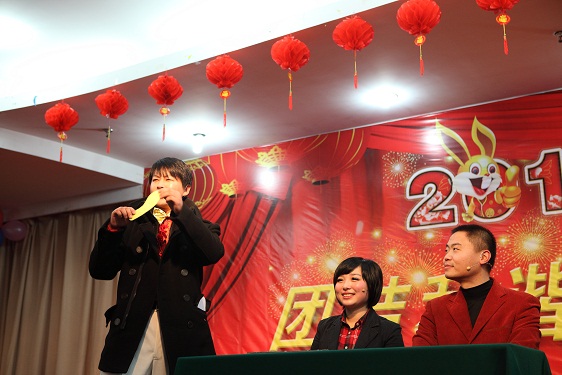虎年喜结丰收果,兔岁欣开幸福花。元月26日下午,“省安2011年春节联欢会”在学苑大厦三楼多功能厅隆重举行。建设厅副厅长王茂新、建管处副处长张行远,集团公司党委书记张海平、副董事长李长斌、副总经理戴良军、纪委书记、工会主席刘振武、副总经理王礼义、总法律顾问申玉恩、总经理助理郭道真、副总会计师王晓军及集团有关部门负责人莅临晚会现场,与省安公司党政领导班子、分公司负责人、各合作单位领导及公司全体新老员工200余人欢聚一堂,共度新春佳节,共享新春喜悦。