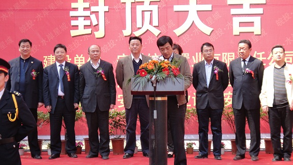 皖投置业总经理耿文女士在庆典上发表讲话,对我公司全体人员的工作给予了充分的肯定,并表示皖投水岸星城一期三标段工程的顺利封顶,奠定了皖投置业与省安装公司成为长期战略合作伙伴的基础。