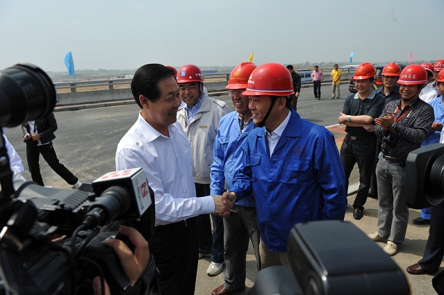 5月12日上午十时许,省委书记张宝顺,省委常委、合肥市委书记孙金龙,合肥市市长吴存荣,市委秘书长兼新桥机场建设总指挥安列等一行莅临合肥新桥国际机场航站楼工程指导、检查。安徽省工业设备安装公司、中建八局、北京装饰、中建二十四局、中煤钢构各单位主要领导陪同检查。