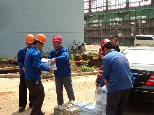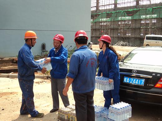 7月28日,气温高达36度,酷暑难耐,分公司书记、经理李贵林,副经理史崇松、方斌、刘红艳一行深入一线工地,慰问战斗在一线的生产、管理人员。每到一处,李贵林同志都会关切的询问防暑和安全情况,并将一箱箱矿泉水送到一线人员的手中,使他们在夏日里感受到了一缕清爽的凉风。